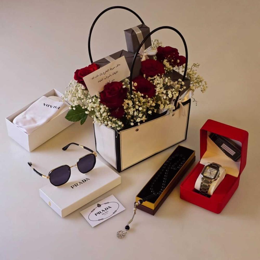 هدايا عيد الميلاد للرجال -افكار للهدايا رجالية فخمة 2027 لتهديه لمسة من الفخامة والأناقة، نقدم لك بوكس فاخر رجالي هذه الهدية تجمع بين الذوق الرفيع وتنسيق فاخر يجمع بين الورد الطبيعي
