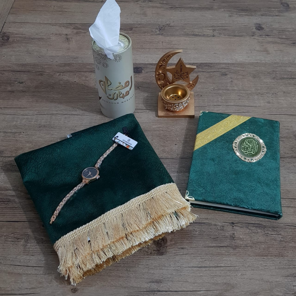 بوكس رمضان هدية رمضانية راقيةطقم صلاةسجادة مع مصحف بجودة عاليةتأتي بشكل مناسب للأهداءمع ساعه ضمان سنه ضد الماءمع مبخرة بشكلمع علبة منديل