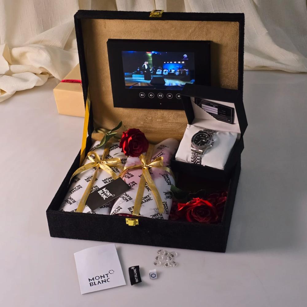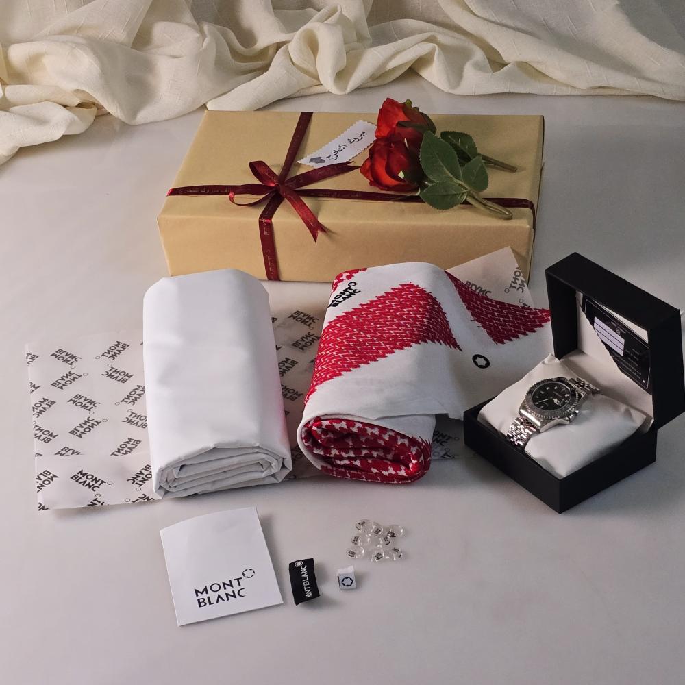 هدايا رجالية بوكس مونت بلانك طقم رجالي للرجال شماغ قماش ساعه بوكس شاشة
