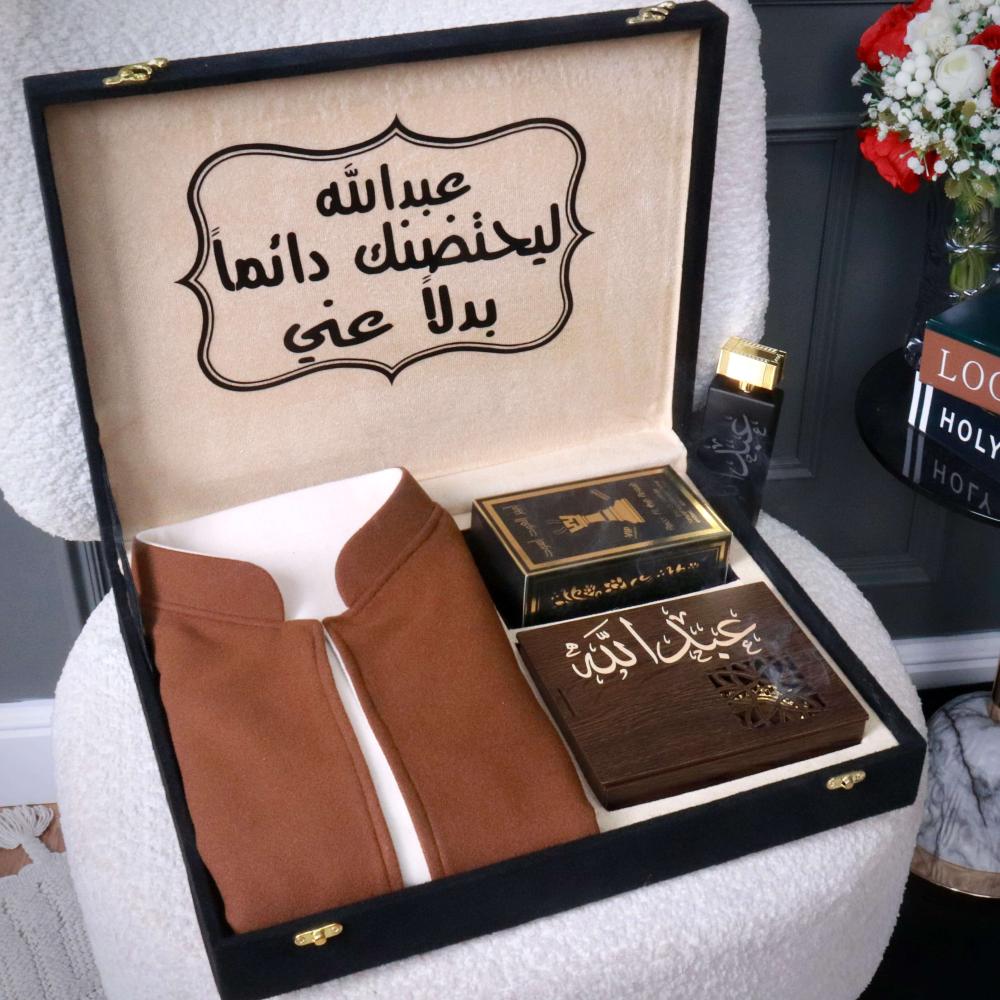 - بوكس قطيفة فاخرة مع إمكانية تصميم عبارة خاصة حسب الطلب لتكون هدية مثالية.
