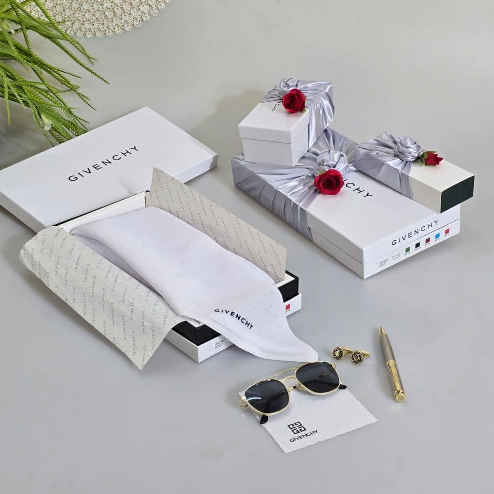 هديه رجالي جيفنشي للعيد عرروض العيد 🎁طقم رجالي جفنشي الطقم مكون من 👇غتره جفنشي جميع المقاسات متوفرهقلم + كبك جفنشي نظاره جفنشي مع الملحقات