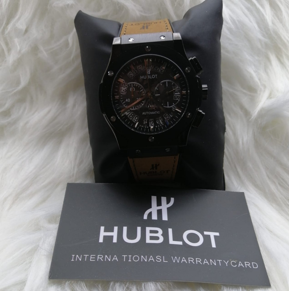 ساعة هوبلت الرجاليةالحجم، حسب الطلبالماركة، هوبلت الموديل، جديدالحركة، بطاريه هيكل الساعه، استانلس استيل مقاوم لصداالحزام[السير] جلد ناعمالجودة} درجة اولى}ضمان سنه من اي خلل فني