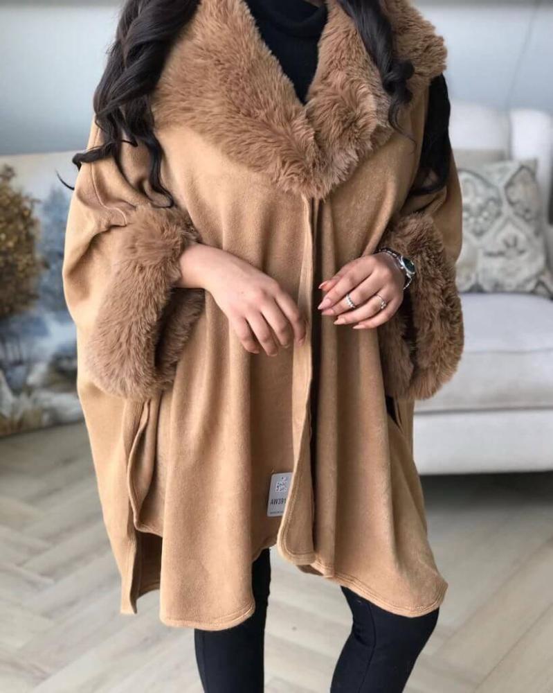 👗شال كتافي انيق من الصوف ومن الفرو الناعم