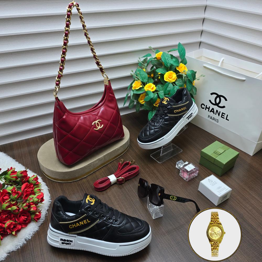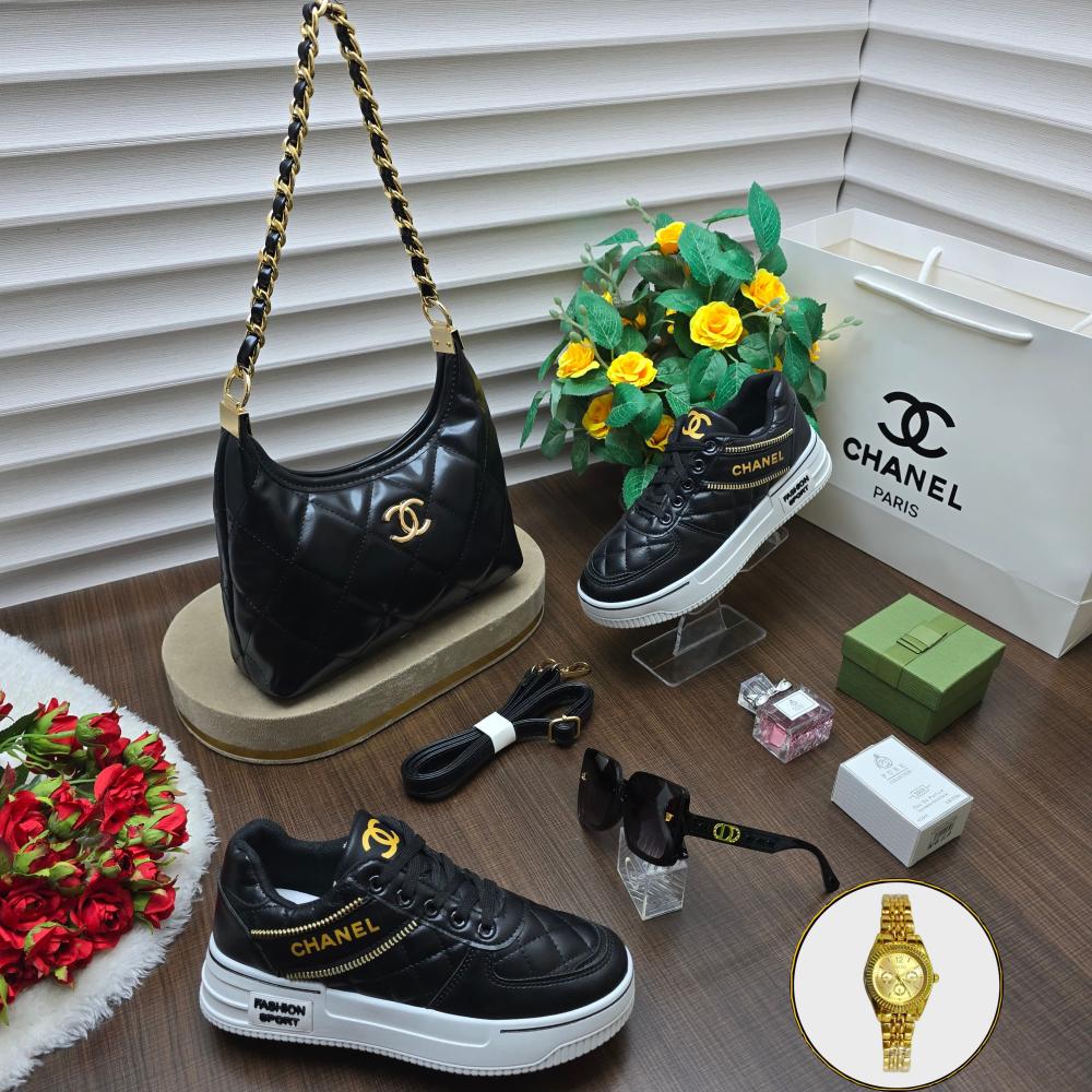 بوكس شانيل -طقم شنطه وشوز سبورت- طقم شانيل نسائي