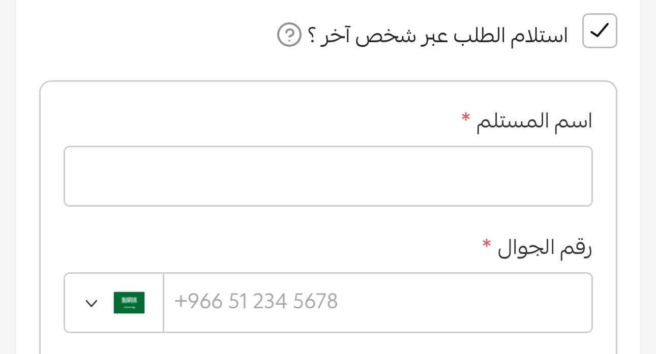 عند تعبئة عنوان المستلم، اضغط على خيار