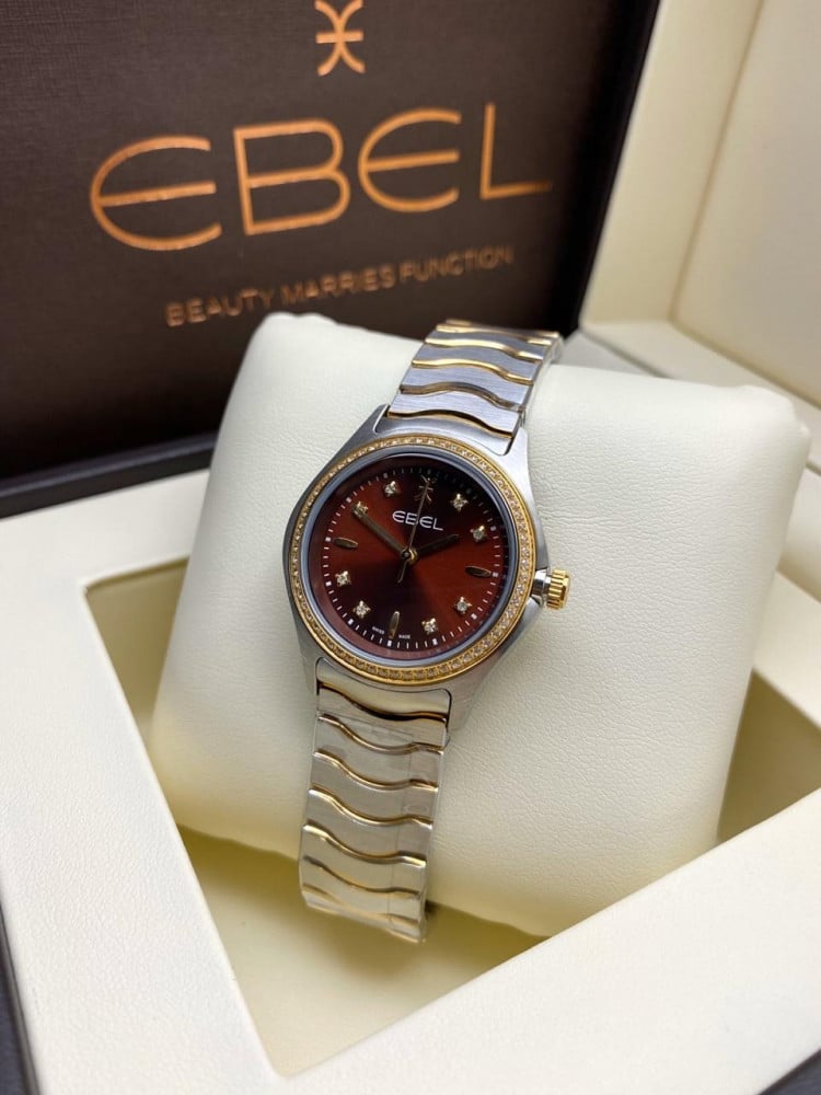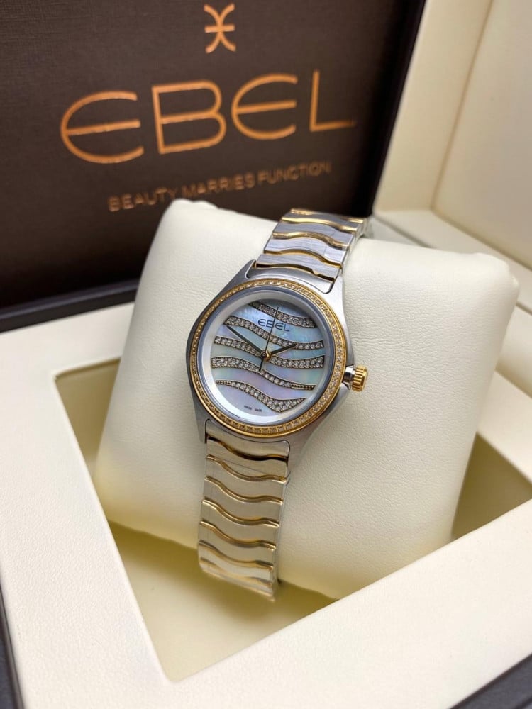 الساعة نسائي الانيقة والراقيهالحجم، وسطالماركة، ايبلالموديل، حديثالحركة، كوارتزهيكل الساعه، استانلس استيل مقاوم لصداالحزام[السير] استيل استانلس.مع علبة الماركة وكرت الضمانالجودة} درجة اولى}ضمان سنه من اي خلل فني